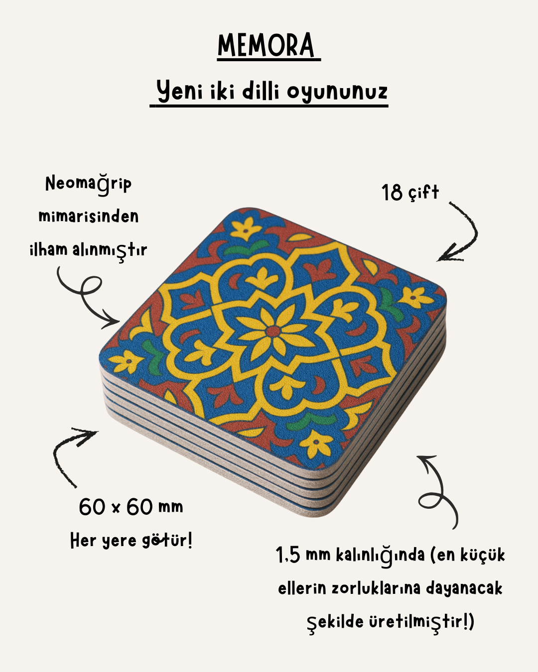 İşte MEMORA: İki Dilli Hafıza Oyunu! 🎉Meşhur hafıza oyunu Memory'yi güçlü bir dilsel dokunuşla yeniden yarattık. 🌍🧠